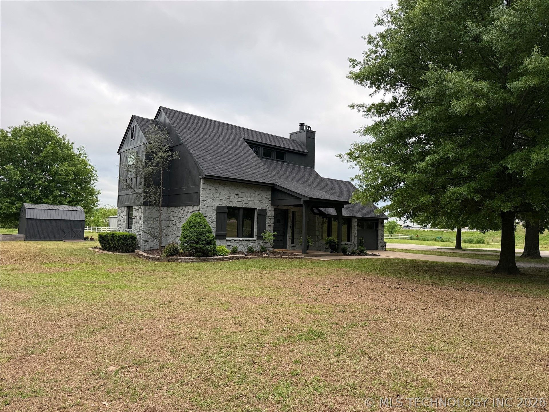 Out of City Limits on Sahoma Lake Road- 5 minutes from Downtown Sapulpa and Entrance to Creek and Turner Turnpike but county living. 2 story home with 3 bedrooms, 2 full baths, covered front and bach porches, 2 car garage and storage shed. (Large shops are not included with property) Home has several updates: New roof, hot water tank, interior and partial exterior paint, upstairs windows, flooring, fixtures and quartz counter tops with tile backsplash. Perfect home to raise your family.